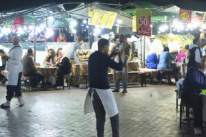 As darkness falls, the ancient Jemaa el-Fnaa Square transforms into a scene from A Thousand and One Nights. Rivers of aromatic smoke rise from countless food stalls, while competing vendors passionately champion their culinary masterpieces. The square pulses with hypnotic energy – snake charmers weave their mysterious melodies, storytellers spin ancient tales, and acrobats defy gravity above mesmerized crowds.