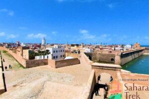 Your day’s final adventure awaits at the Kasbah of the Udayas, perched dramatically above the Sale River. This former stronghold of the feared Barbary Pirates has transformed into a haven for artists, its winding blue-and-white streets now filled with creativity rather than corsairs. As you explore the narrow passages, watch for the hidden entrance to a serene garden at the Kasbah’s heart – a peaceful oasis perfect for reflecting on your day’s journey through time.