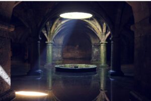 But El Jadida holds its most captivating secret beneath your feet. Descending well-worn steps below the fortress walls, you’ll enter the mysterious Portuguese Cistern – a subterranean cathedral of light and shadow that has enchanted filmmakers for generations. Watch as a single shaft of sunlight pierces the darkness, creating magical reflections on the still water that mirrors countless slender columns.