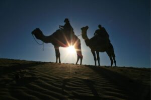 As twilight’s indigo cloak settles over the dunes, return by camelback to the comfort of your auberge or luxury camp, where dinner and dreams of desert adventures await.